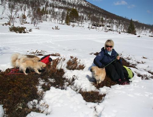 Torill og jeg gikk på fotene opp lia etter ei hard og fin scooterløype. Det var veldig flott føre på vei oppover, men vi kjente at det begynte å bli litt løsere når vi var på vei hjem. Det er sent på vinteren, og dette blir nok siste tur til Dindalen på snøføre i år. Det blir selvsagt mange turer dit til sommeren.